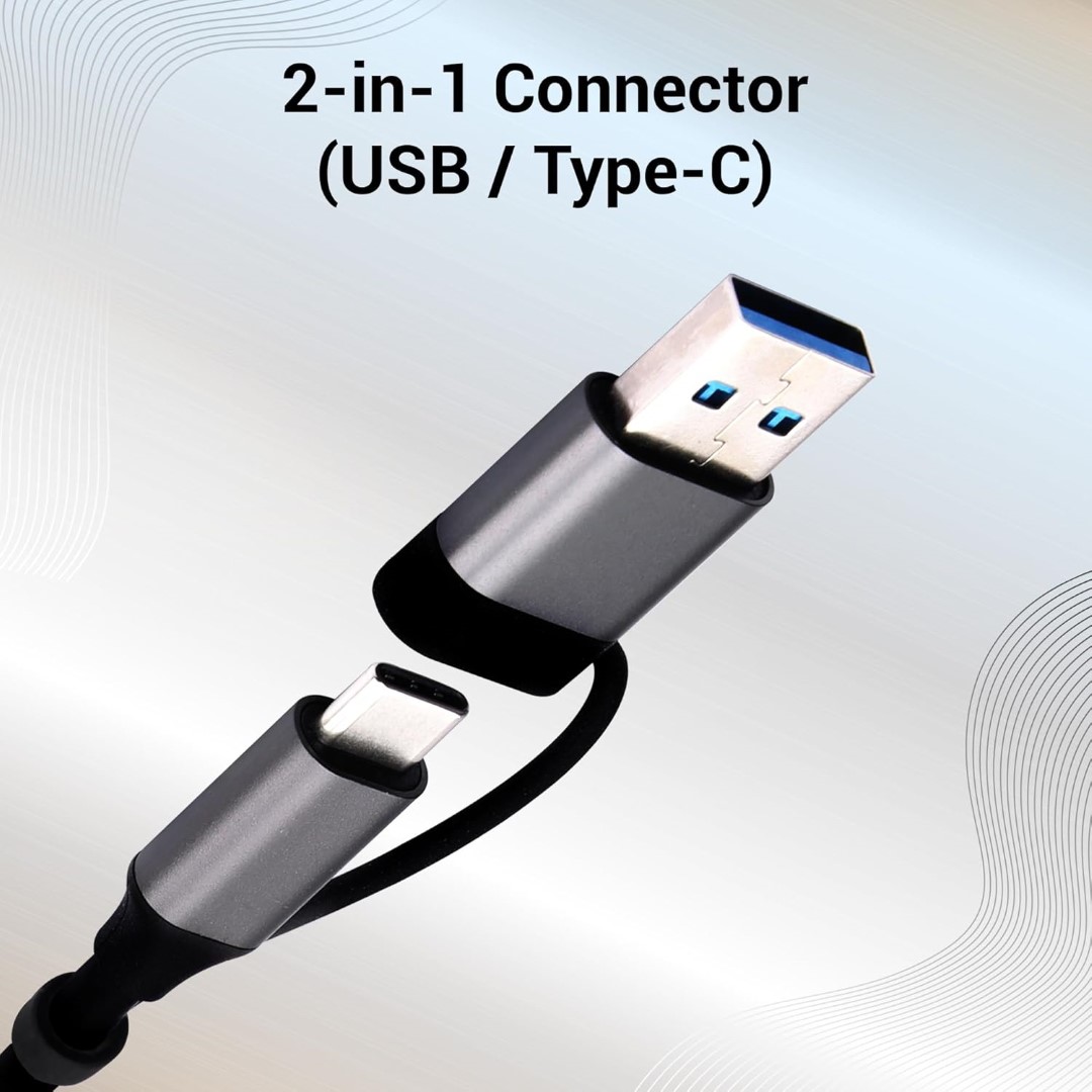 - 2-in-1 Connector: Supports both standard USB and Type-C connectivity for wide compatibility.